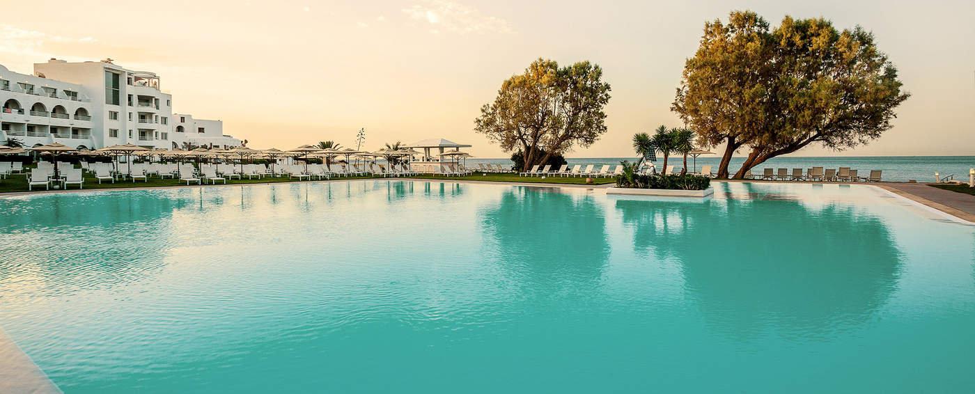 Situé sur la magnifique plage de sable doré d'Hammamet, à proximité de la médina fortifiée du IX siècle, l’hôtel dispose de 271 chambres disposant d'une spectaculaire vue sur la mer, un large choix de bars et de restaurants mettant à l'honneur la cuisine méditerranéenne.Le spa, véritable havre de sérénité vous propose une vaste variété de soins, l’hôtel met à votre disposition une multitude de services (garde d'enfants, organisations de repas d'affaires ou groupes, excusions...), pour séduire les plus actifs de notre clientèle, des activités sportives sont également proposées, telles que le tennis, l'équitation, le golf etc...